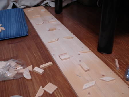 リフォーム時にあまった板にホームセンターで200円で売ってた「木切れ詰め合わせ」を釘打ちして