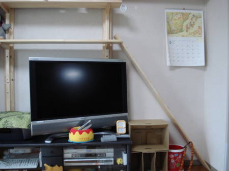 テレビの向かって右隣は常にみかん隊長のケージが置いてありました。